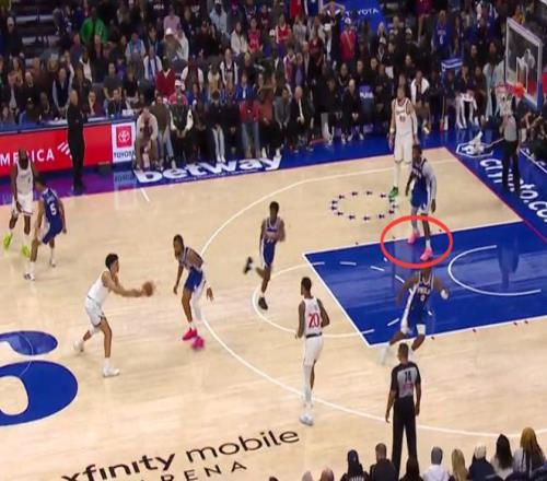 第一次漏判,发生在距离比赛结束还有1分43秒,76人的德拉蒙德在没有积极防守对方球员的情况下在己方禁区内停留时间超过3秒,这是一次漏吹的防守三秒违例,快船吃亏,76人获利。